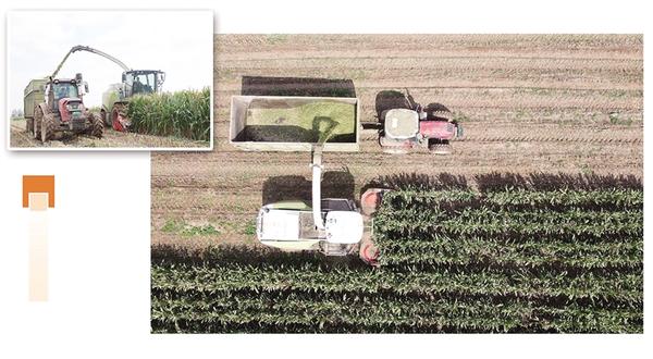金秋時(shí)節(jié),田野里一片繁忙景象。在沈丘縣的一片農(nóng)田里,一臺(tái)大型青貯玉米收獲機(jī)精準(zhǔn)地將玉米秸稈連同果穗一同卷入機(jī)器。經(jīng)過(guò)粉碎、壓實(shí),玉米秸稈變身青貯飼料被輸送到隨行的運(yùn)輸車?yán)铩?/p>